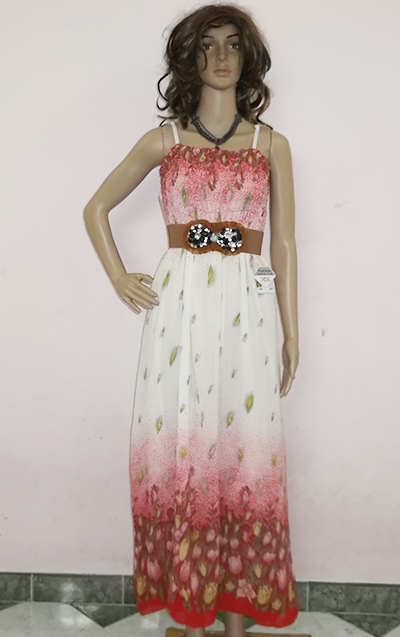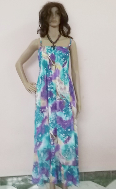 Đầm dài 2 dây hoa văn nhiệt đới Tropic