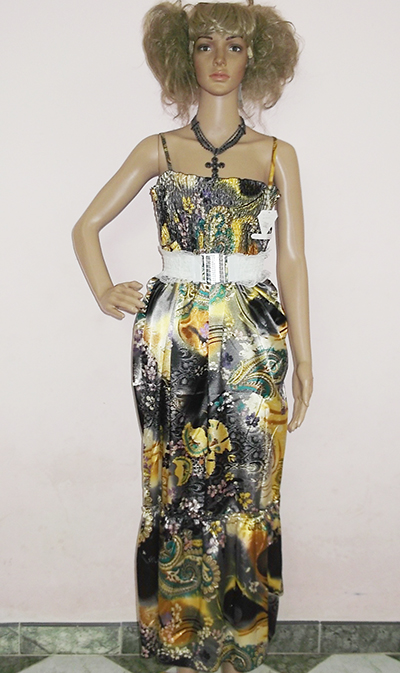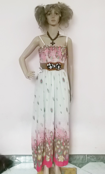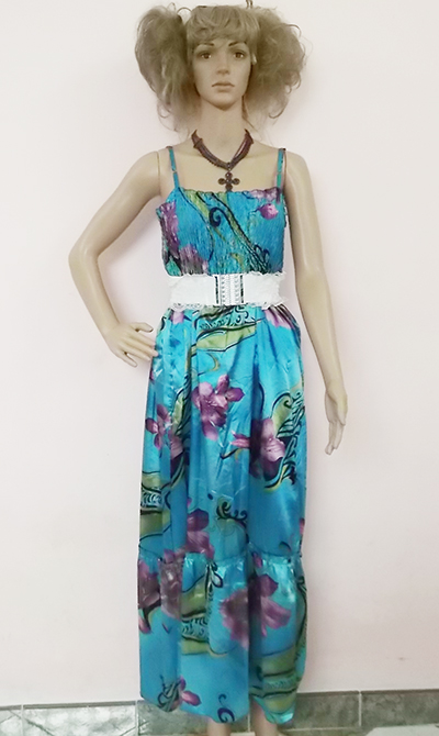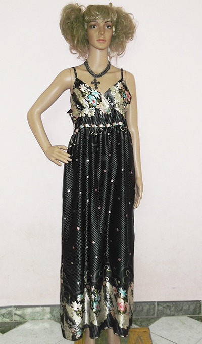 Đầm dài HongKong 2 dây hoa văn lạp thể