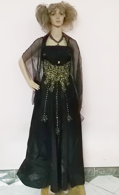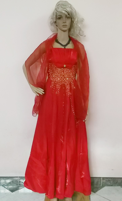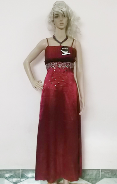 Đầm dài 2 dây đỏ kết hạt chất liệu satin