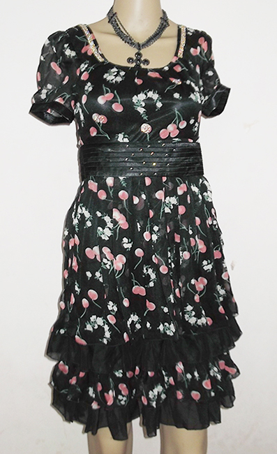 Đầm tầng voan HongKong hoa văn trái cây
